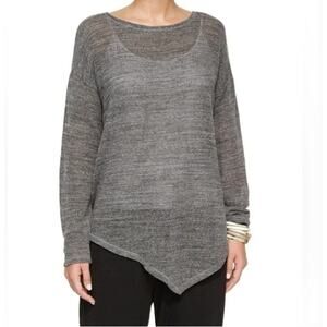 Eileen Fisher Womens Gray Cotton Mesh Asymmetrical Hem Sweater