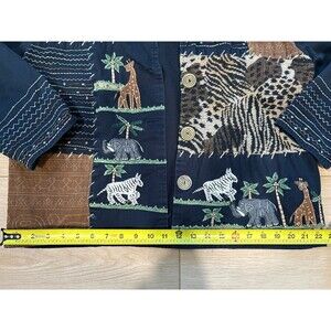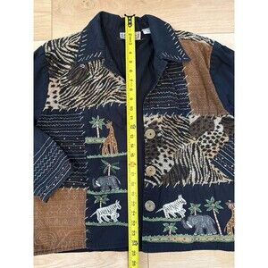 New Direction Safari Patchwork Women Jacket Embroidered African Animals Cotton M