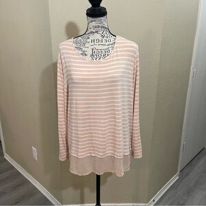 Chico's Pink and White Striped Long Sleeve Top