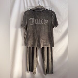 Juicy Couture Gray Velour Matching Set M Rhinestone Logo