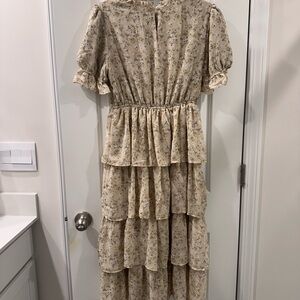 Embrace elegance with this floral tiered midi dress. Perfect for any occasion, its soft fabric and flowing design offer both comfort and style.