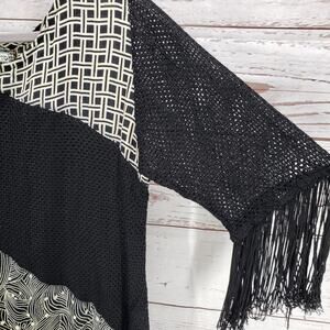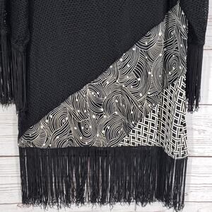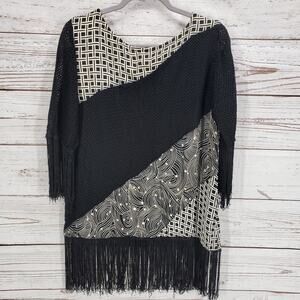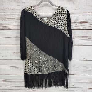 Molato Women's Black Color block Fringe 3/4 Sleeve Top Size Small