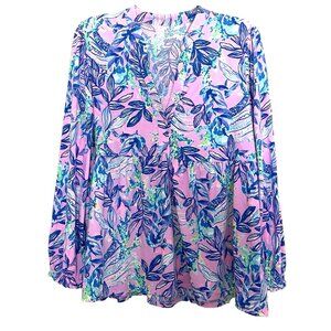 Lilly Pulitzer Winona Knit Tunic Top XL Lilac Rose Just a Lil Jelly Long Sleeves