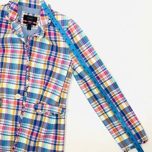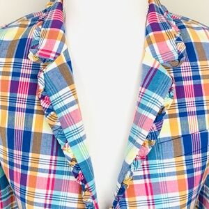 J Crew Women Size 2 Regent Blazer Pastel Plaid Ruffle Lined One Button Preppy