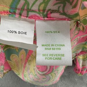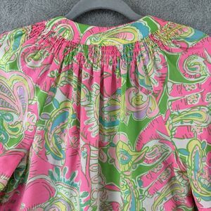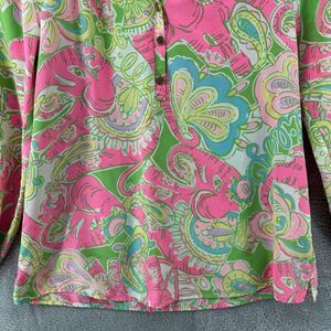 Lilly Pulitzer Top XS Silk Elsa Chin Chin Elephant Pink Ballon Sleeve V-Neck