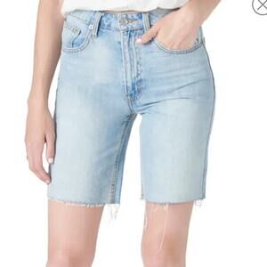 New with tags Lucky Bermuda Jean Shorts. Modest Length. Raw Hem. High Rise. More sizes available Size 28 MSRP $70 Approx flat Lay Measurements Waist 15" Rise 11” Inseam 8 1/4" Inseam in description picture is wrong.