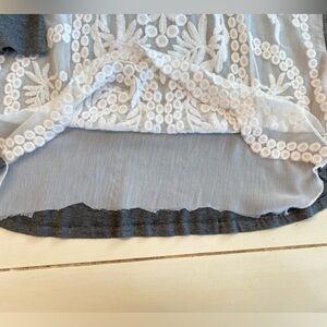Venus Lace Overlay Peasant Top Women’s Medium Gray & White Long Sleeve Cottagecore Embroidered Floral