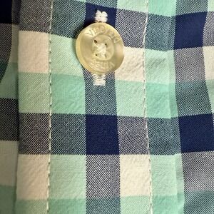 The Vineyard Vines Performance Slim Fit Tucker Plaid Shirt in Men's Large is a stylish and versatile addition to any wardrobe. Made from a comfortable cotton blend fabric, this long sleeve button-up shirt features a slim fit for a modern look. The classic blue and green plaid design, collared neckline, and button-down style make it suitable for a range of occasions, including casual outings, workwear, and business meetings. With accents like button closures and embroidered detailing, this shirt combines preppy charm with a touch of sophistication, perfect for the summer and spring seasons.