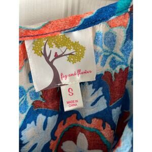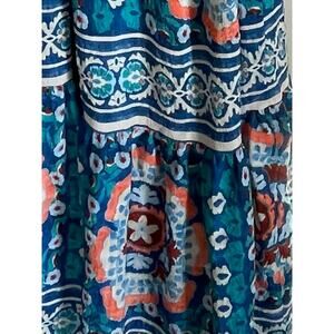 Fig and Flower Midi Dress Blue Floral Tiered Lined Stretch Sz S Cottagecore