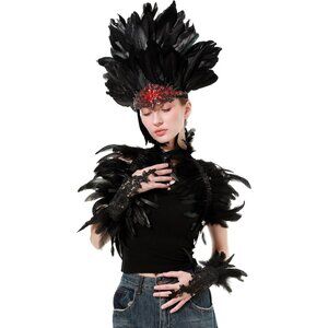 Ships quick from a smoke-free, pet-free home. Feel free to bundle and save or make a reasonable offer!"}TECTEDuserNow write a similar description for this item using the template above: Women's Feather Headpiece Handmade Rhinestones Headband for Costume 2nd Version 1 / 2 - Black 9.45 X 7.87 X 0.79 Inches 3.53 Ounces Package Dimensions: 9.45 X 7.87 X 0.79 Inches; 3.53 Ounces Department: Women Color: Black Fabric Type: Feather Care Instructions: Hand Wash Only | Fabric Type: Feather, Rhinestones | Handmade | Occasion: Costume, Halloween, Party, Masquerade, Retro, Role Playing, Performance, Night Out, Themed Event | Suitability: Suitable For Most Head Sizes | Measures: Feather Headpiece: 10.2