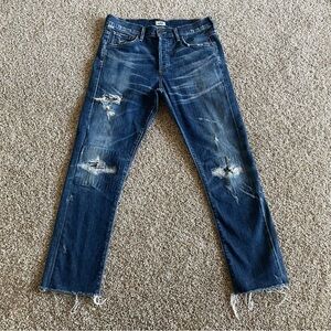American Eagle Relaxed Mom Jeans Women’s 6 Long Blue Light Wash Tapered Ripped
