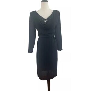 Unique Vintage Black Tulle Cocktail Dress Red Rose Detail L