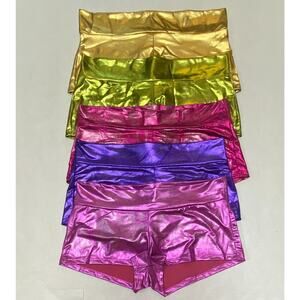 New Lot of 5 Metallic Shiny Low Rise Booty Shorts Medium Rave Dancer Pink Gold