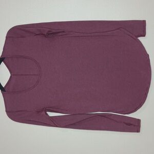 Lululemon Athletica Yogini 5 Year Long Sleeve Tee in Heathered Rust Berry with Thumb Holes. Vitasea Fabric blends Pima Cotton with LYCRA fibers for a super-soft feel and great shape retention. No Size Tag. Excellent Condition.