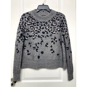 Rag Bone Isadora Leopard Print Mock Neck Sweater XS in Grey Wool Alpaca Blend