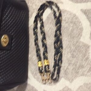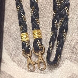 Braided leather and gold tone metal strap is removable