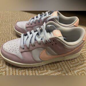 Nike Dunk Low in pastel blue, purple and pink. Worn once and in pristine condition.