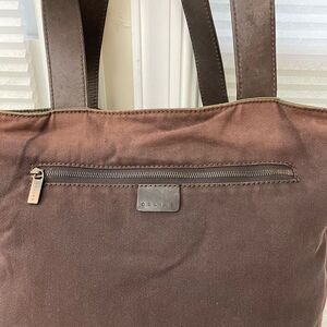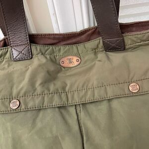 Celine Vintage Reversible Green Nylon & Brown Canvas Tote Shoulder Bag medium