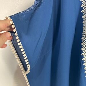 Kori America Blue Kimono Small Medium Crochet Trim Pom Pom Open Front
