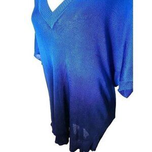 Chico’s Sweater Blue Ombre V-neck Slinky Knit Pullover NWT Women's Large