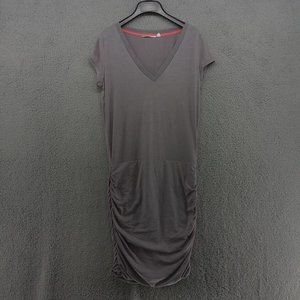 Athleta Dress Womens Small Gray Short Sleeve V Neck Cinched Shirt Dress
