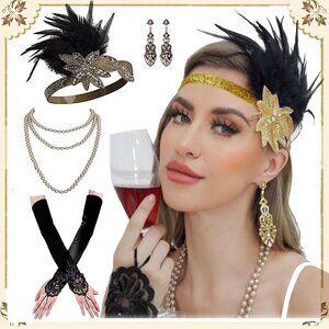 Step into the roaring 20s with this fabulous flapper costume accessories set! Perfect for vintage-themed parties, Halloween, or any occasion where you want to channel those glamorous Gatsby vibes.