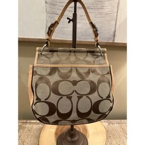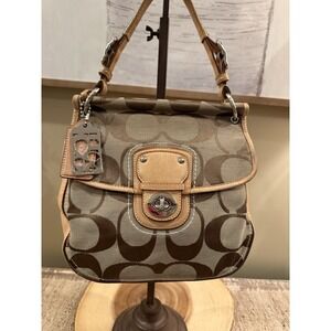 This COACH Signature Crossbody Bag 2WAY 70th Anniversary Limited Turn Lock 19034 is a rare and limited edition handbag and so unbelievably gorgeous just a very special special piece created by the renowned brand Coach. This medium-sized bag features a classic crescent shape with a logo pattern on the exterior, made of a combination of leather and canvas. The turn lock closure, silver hardware, and beige leather handle add to the luxurious design of the bag, perfect for women who appreciate designer accessories. It has so many features the beautiful stripes satin lining the gorgeous leather trim the top handle with the Crossbody strap that's detachable. Also the gorgeous turn lock closure It also includes a detachable strap, key chain, and bag charm, making it a versatile and stylish choice for any outfit. This is one bag you will treasure and not be disappointed that you added it to your collection. Just a very, very special piece.