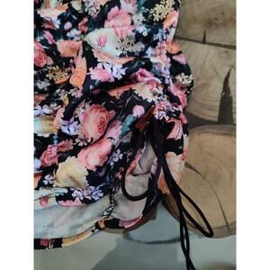 For Love and Lemons mini dress XS corset floral black lace coquette rouched, in good pre-owned condition: no holes, no stains, minimal wear. Marked as a women's size XS, measurements are taken while laying flat and are approximate: