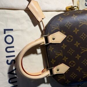 This authentic Louis Vuitton Alma is rendered in the house's signature coated Monogram canvas which has long been a quintessential house staple. M53152