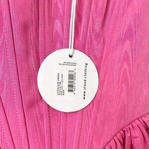 New with tag with flaw: Some marks throughout from handling. Size 6 Polyester, cotton Color: Lollipop. Fit and flare. Corset bodice with boning. Backside zipper. Fabric + tulle lining. Has pockets Approx measurements: Pit to pit: 16” Waist: 13” Length: 33”