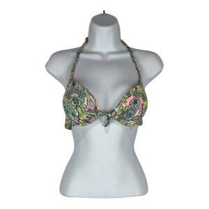 Victorias Secret 32C Multicolor Paisley Halter Bikini Top Nylon Blend