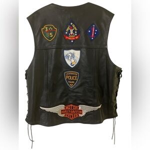 Harley Davidson Police Motorcycle Vest Size XL Patched Leather Blue Knights