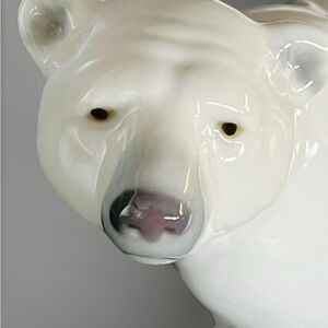 Charming Lladro polar bear sculpture. Glossy white finish. Has tag on bottom in perfect condition. 4” tall x 5” wide.