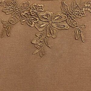 Whether you're heading to a lunch date, a cozy night in, or just running errands, this sweater will keep you feeling comfortable and looking chic. The rich, earthy tone adds a touch of elegance to any outfit, while the delicate floral details give it just the right amount of charm. Dress it up with your favorite jeans or pair it with leggings for a more casual look.