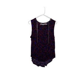 Torrid Printed crepe chain link printed sleeveless blouse tank top Purple blue Size 1 = 1X. In good condition. Crepe woven fabric. 100% rayon. V-neck. Sleeveless. Chainlink detail. Shirttail hem. Animal camouflage print.