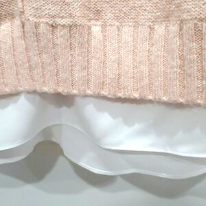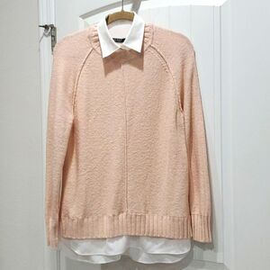 Lauren Ralph Lauren Pull Over Peach Cardigan, Faux Collar, Size Medium , Faux undershirt. excellent condition, Measurements are 20 pit to pit 30 overall length