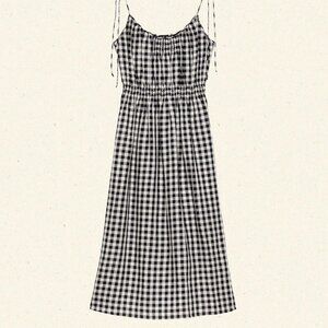 New with tags DÔEN sun dress is black and white gingham. Shoulders tie with a bow, ruched waist. Soooo cute and summery, but I can't justify owning this much gingham!