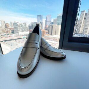 New Cole Haan Stassi Gold Leather Coastal Nautical Penny Loafer Shoes