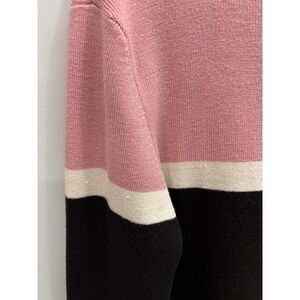 Jennifer Moore Full Zip Front Colorblock Sweater Pink Black M Preppy Knit Top