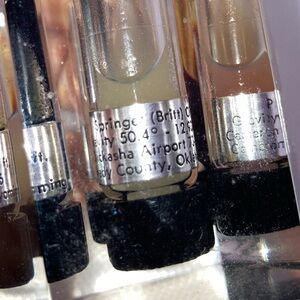This incredibly rare vintage paperweight is a unique collectible item that will be a great addition to any collection. It features a clear Lucite construction with embedded crude oil vial samples from Apache, OK.