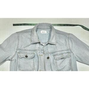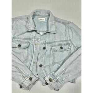 Mono B Women's Light-wash Denim Cropped Jean Jacket Pockets Drawstring Hem Small