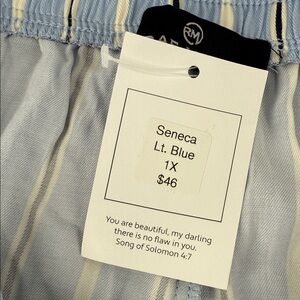 Rae Mode Pants Wm 1X Seneca Light Blue Striped Wide-Leg Button Close
