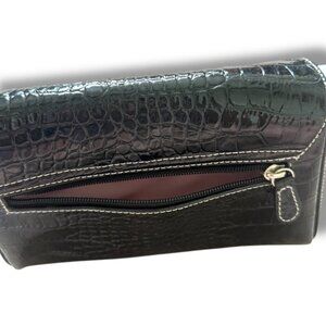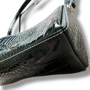 Y2K Liz Claiborne Black Crocodile Embossed Faux Leather Purse Shoulder Bag