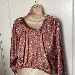 NWT Hippie Rose, Mocha floral adjustable satin woven top. Size XL