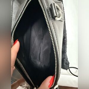 Chic black crossbody bag with a minimalist design. Features an adjustable strap and subtle branding. Ideal for versatile styling.