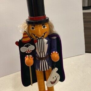 This Very rare Bombay Wooden Halloween Pumpkin ๐ Nutcracker is 15โ Tall 5โ Wide