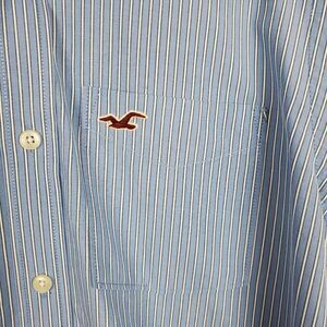 Hollister Striped Button Down Shirt Blue Large