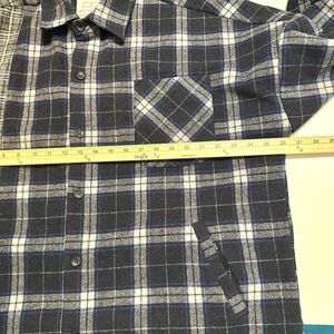 This MODITEC women s shirt features a stylish plaid design in navy blue and gray. It has a button-up front, long sleeves, and a single chest pocket, making it perfect for casual wear or layering. The fabric is a comfortable blend of wool and polyester, providing warmth without sacrificing style. Ideal for fall and winter seasons, this shirt can be paired with jeans or leggings for a relaxed look. See measurements in photos.