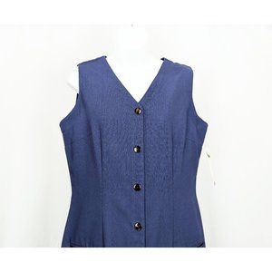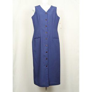 Vintage 90s Jumper Dress Blue Midi Length Button Front Misses Size 10 New