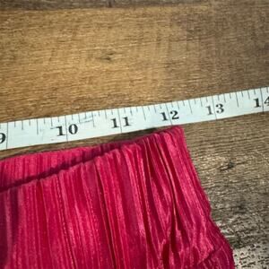 These Unbranded wide-leg pants in size S are designed for women and feature a solid pink color. Made from polyester, they have a high rise and an elastic waistband for comfort. The pants are pleated and have a 32-inch inseam, making them suitable for party or cocktail occasions with a retro 70s disco theme. They are machine washable and ideal for spring wear. The waist size is 13 inches unstretched. This item is pre-owned.